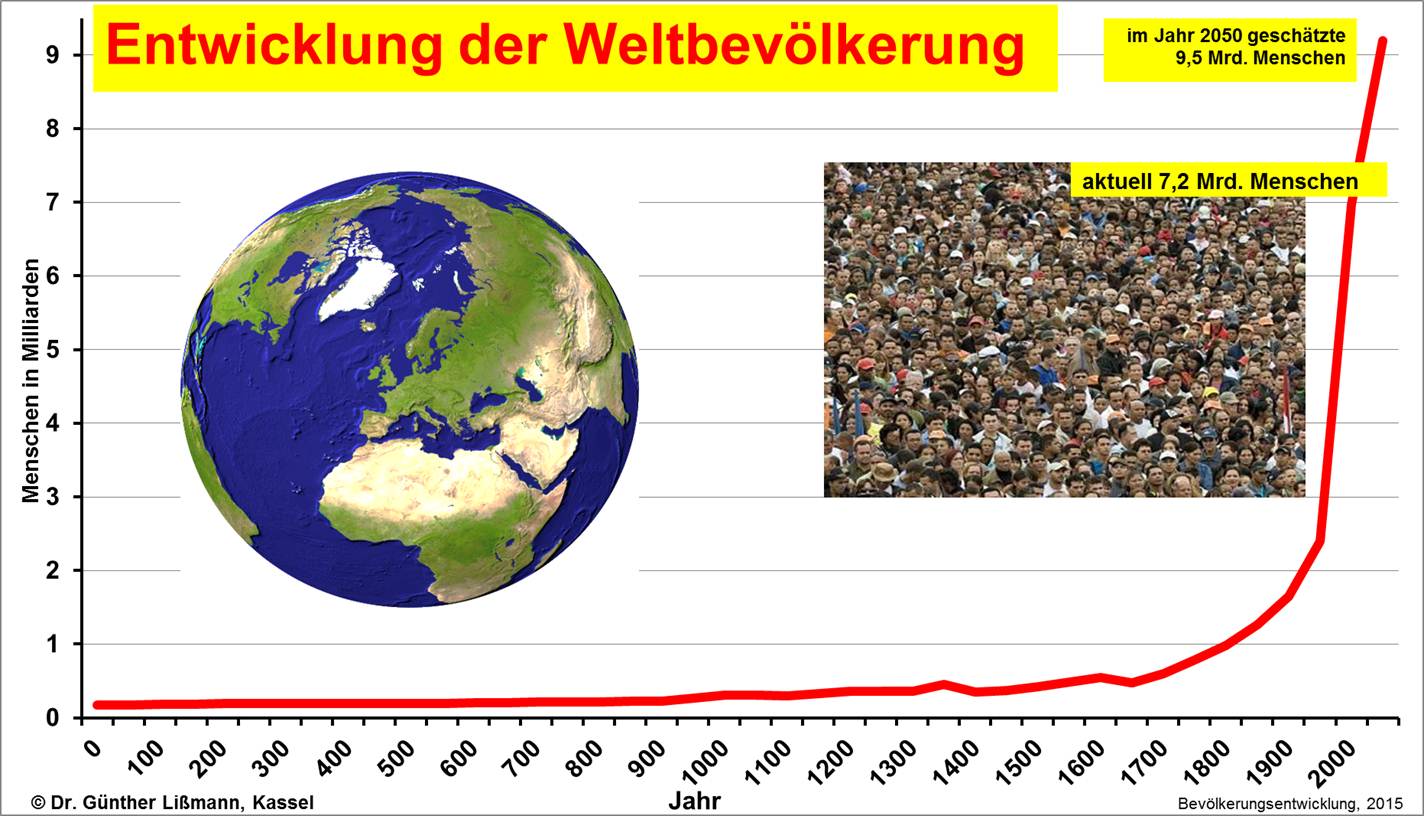 Die noch verfügbare Ackerfläche der Erde muss heute für eine Weltbevölkerung von 7,6 Milliarden Menschen ausreichen. Für das Jahr 2050 werden nach einer Studie der Vereinten Nationen 10 Milliarden Menschen erwartet. Trotz demographischem Wandel mit einem Bevölkerungsrückgang in vielen Staaten Europas, ist das Wachstum der Weltbevölkerung insbesondere in Asien, Afrika und Latein Amerika ungebrochen. Die Philosophie von Wohlstand auf Kosten der endlichen Ressourcen und der nachfolgenden Generationen ist nicht zukunftsfähig. Die dringlichste Aufgabe muss sein, einen Übergang zu schaffen, aus der jetzigen Dominanz der Ressourcenverschwendung, hin zu einer nachhaltigen und dauerhaft tragbaren Wirtschaftsweise.